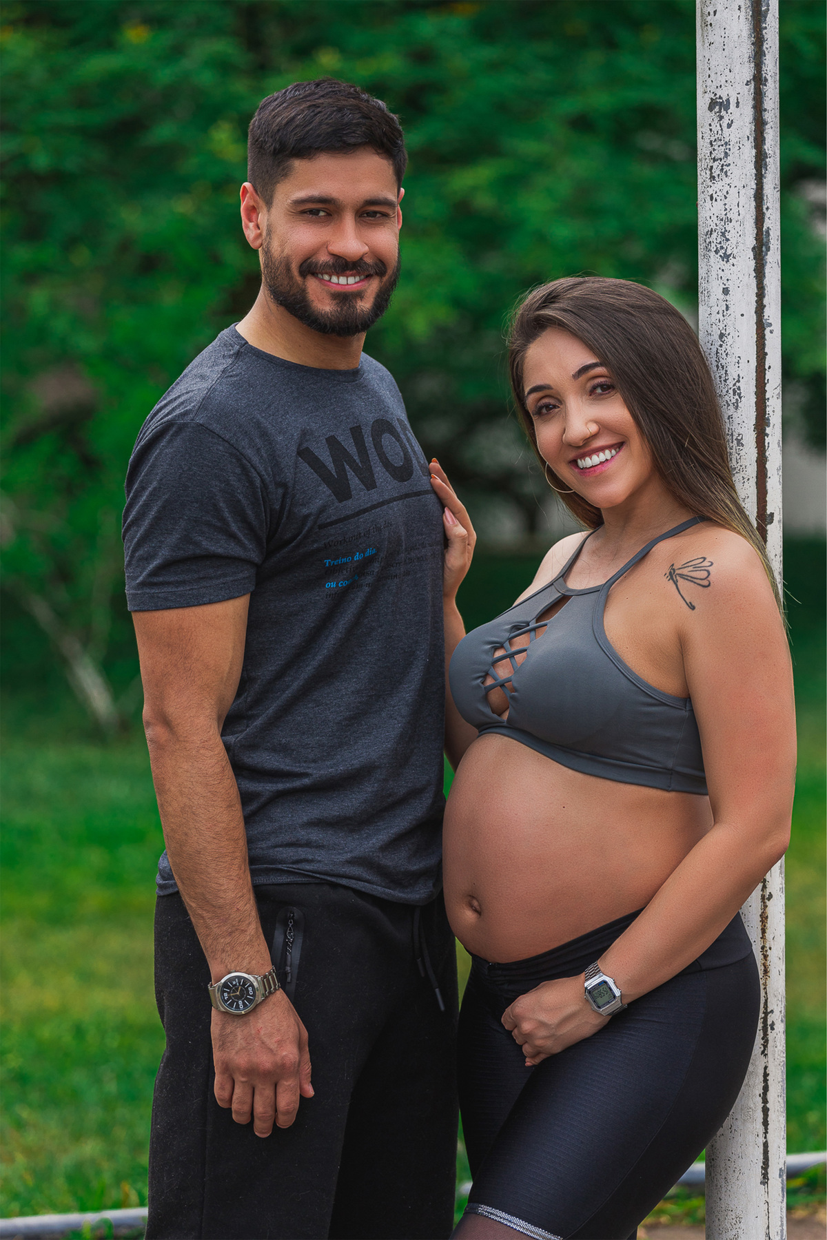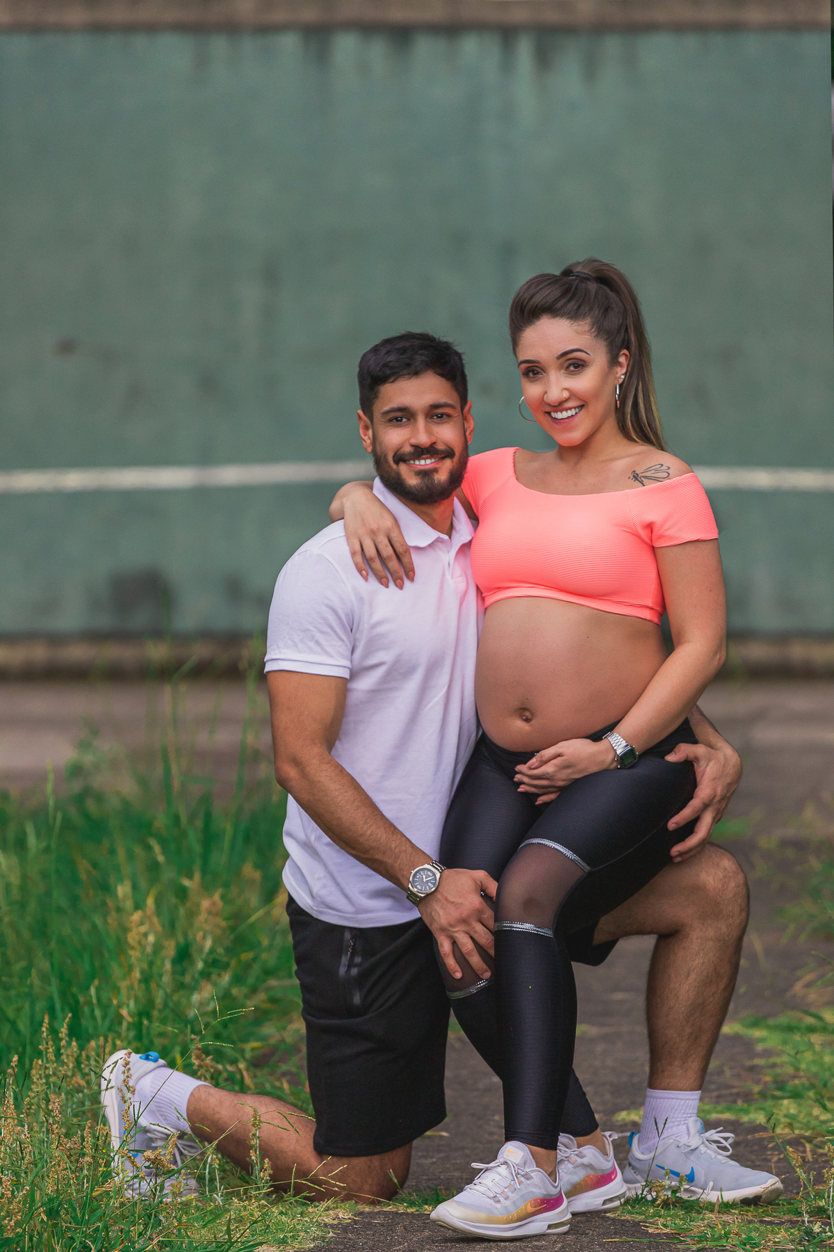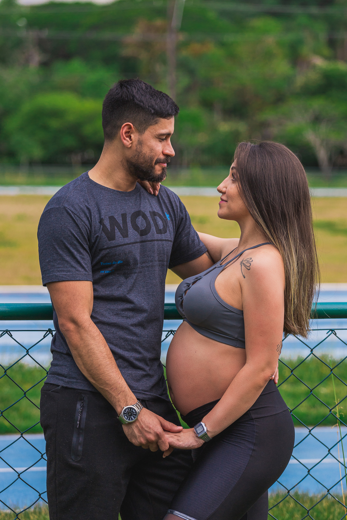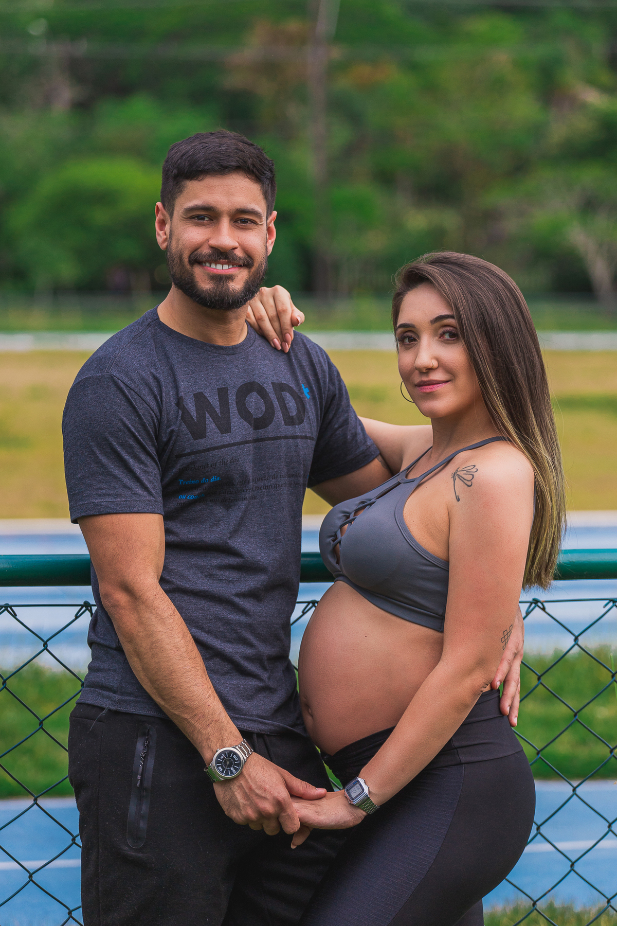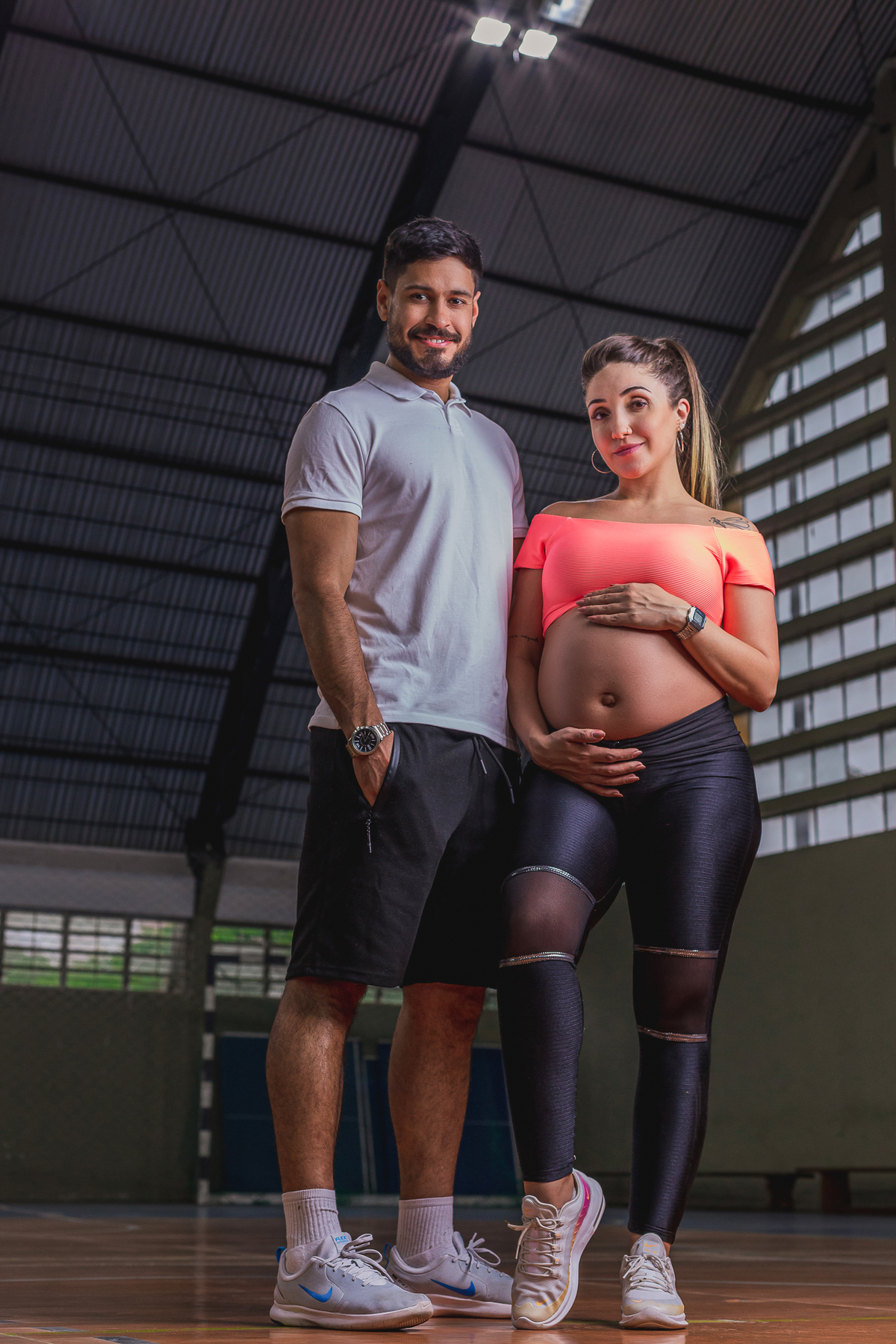 A sheroll, mamãe do Isaac, queria fazer um ensaio que registrasse esse momento tão importante na vida dela e representasse a relação entre ela e o seu companheiro Manoel. Como os dois são profissionais da área da educação física, fizemos as fotos nessa pegada mais esportiva. O resultado ficou encantador!